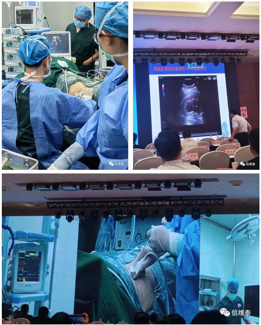 手术演示环节中使用了富士(日立)的超声设备,独特设计的弧形探头有零角度穿刺、十五度穿刺、三十度穿刺三种穿刺角度可供选择,穿刺通道内置在弧形探头内部,不仅可以减少出血还能大大减少对肾脏的损伤!中国人民解放军中部战区总医院泌尿外科主任潘铁军教授就对这款探头赞赏有加。专家们行云流水般的操作、精准全面的解答,令参会人员获益匪浅,纷纷为之喝彩。
