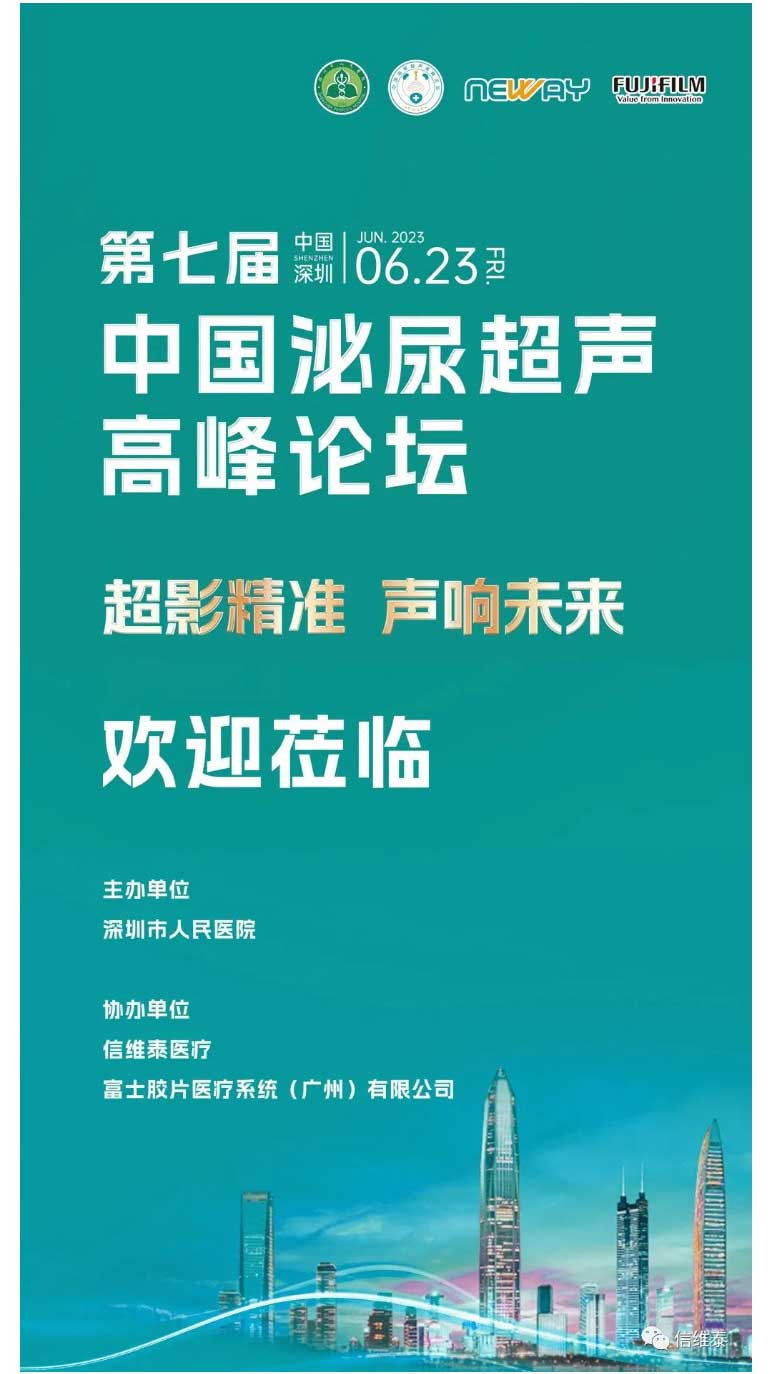 由深圳市人民医院主办、信维泰医疗协办的第七届中国泌尿超声高峰论坛将于2023年6月23日在深圳召开,本次会议将会邀请到泌尿外科领域的权威专家来作精彩学术报告,并就超声影像在泌尿外科手术中的应用的前沿和热点问题开展专题讨论及学术争鸣。我们真诚的邀请您参与本次学术盛典。
